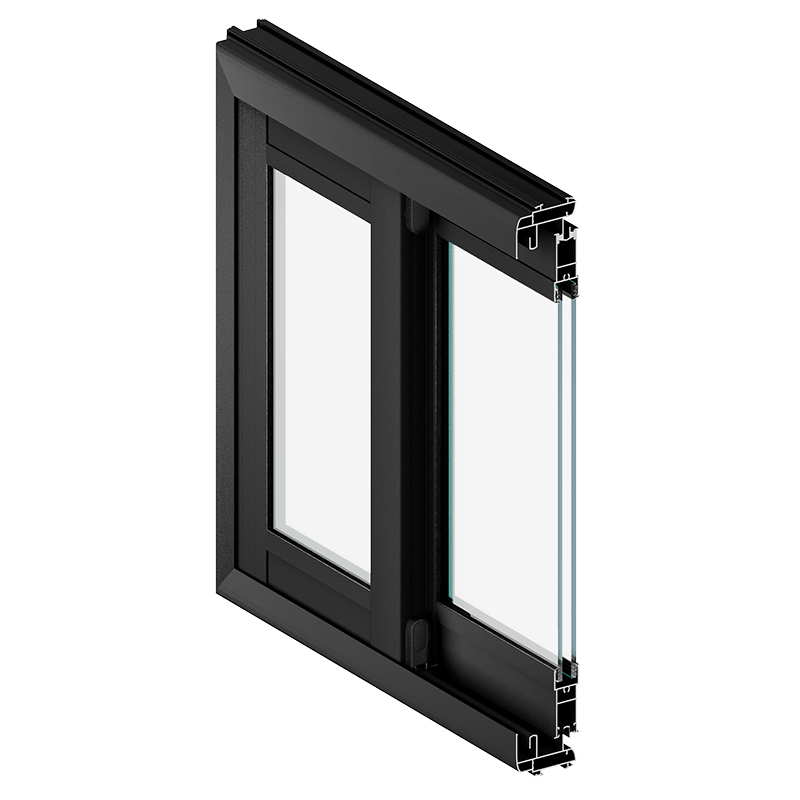 Cavidad para alojar DVH de hasta 24 mm de espesor en corredizas y 28 mm en batientes
